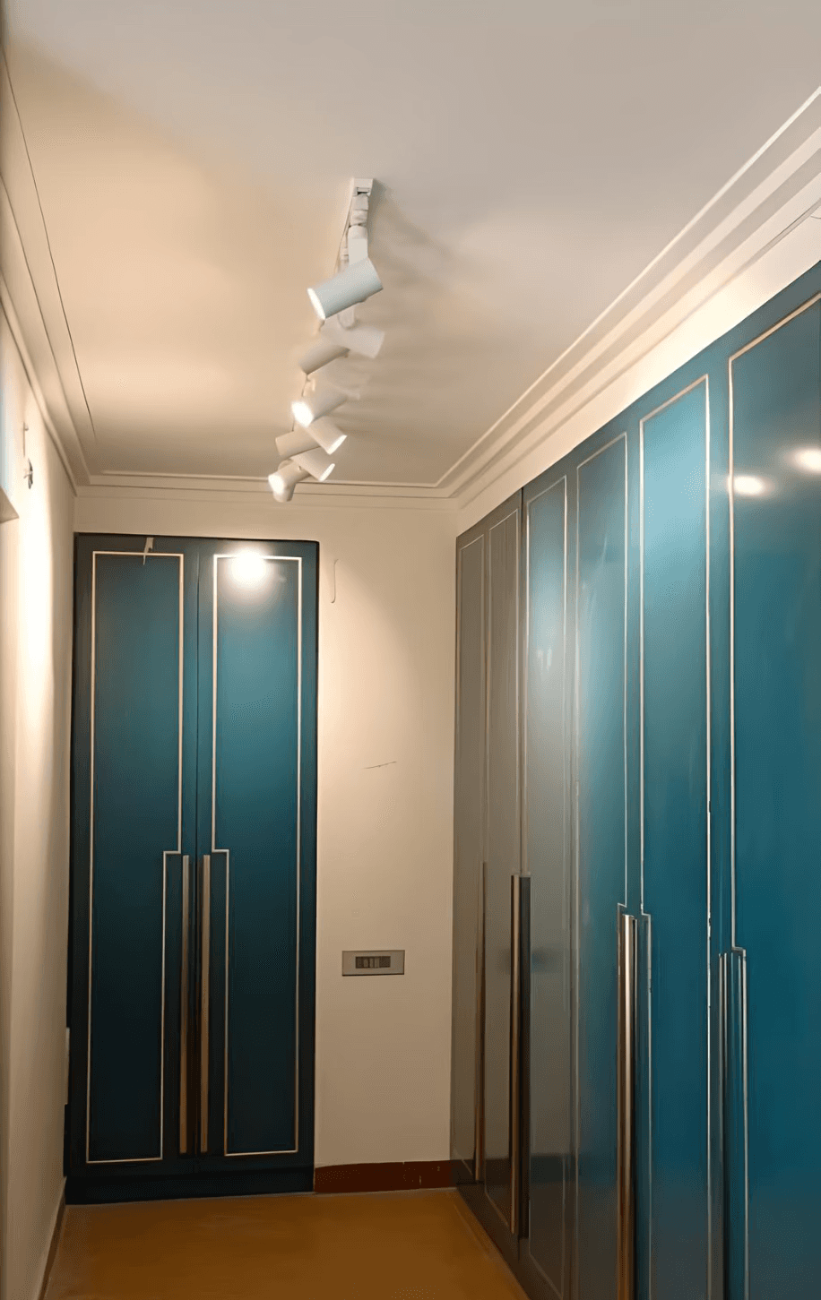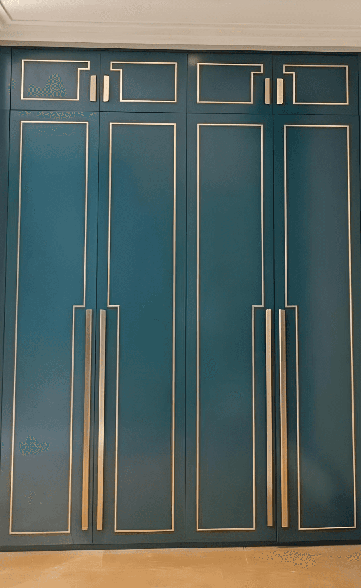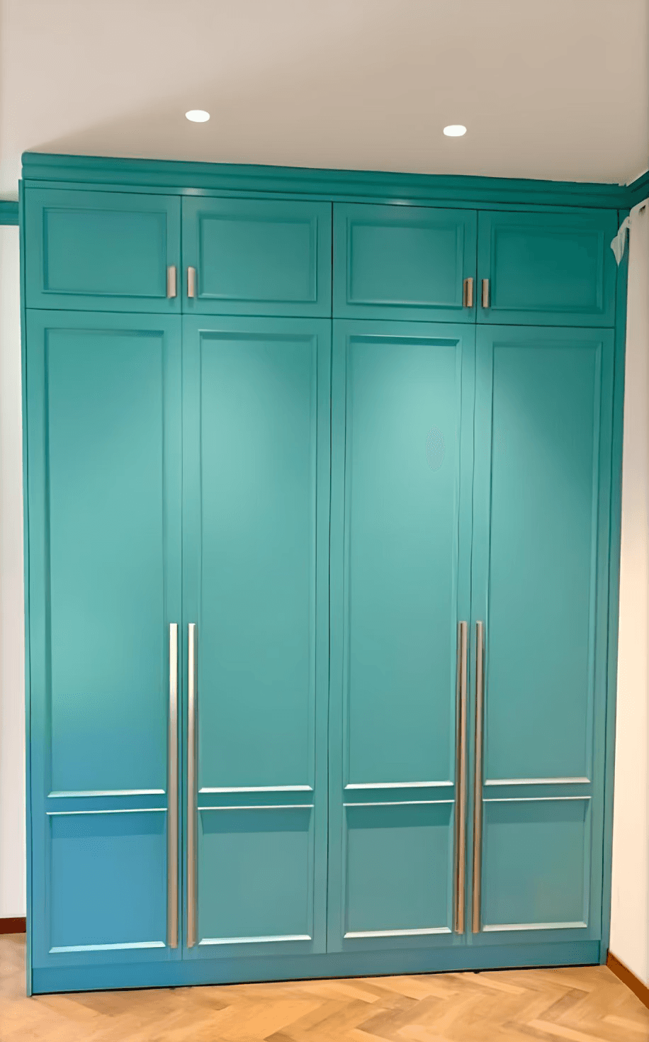 This dining space articulates a sophisticated industrial-rustic aesthetic, anchored by a statement table featuring a burnished copper-toned surface and a timber trestle base. The seating juxtaposes black structural frames with natural cane webbing and teal upholstery, offering a tactile contrast against the exposed brick wall and classic white wainscoting. Suspended ribbed-glass pendant fixtures provide vintage-inspired illumination, while a distressed area rug grounds the space in warmth and texture.